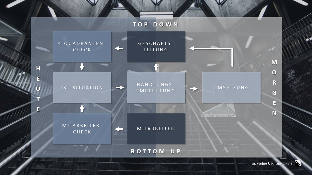 - Aus Sicht der Geschäftsleitung. Ein Experteninterview, der 4-Quadranten-Check, gibt Einblicke in die Top-Down Situation.
