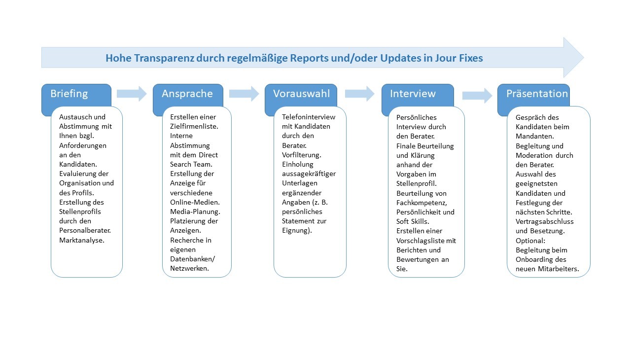 - Absolute Fairness und Transparenz gegenüber Ihnen als Mandanten und den Kandidaten